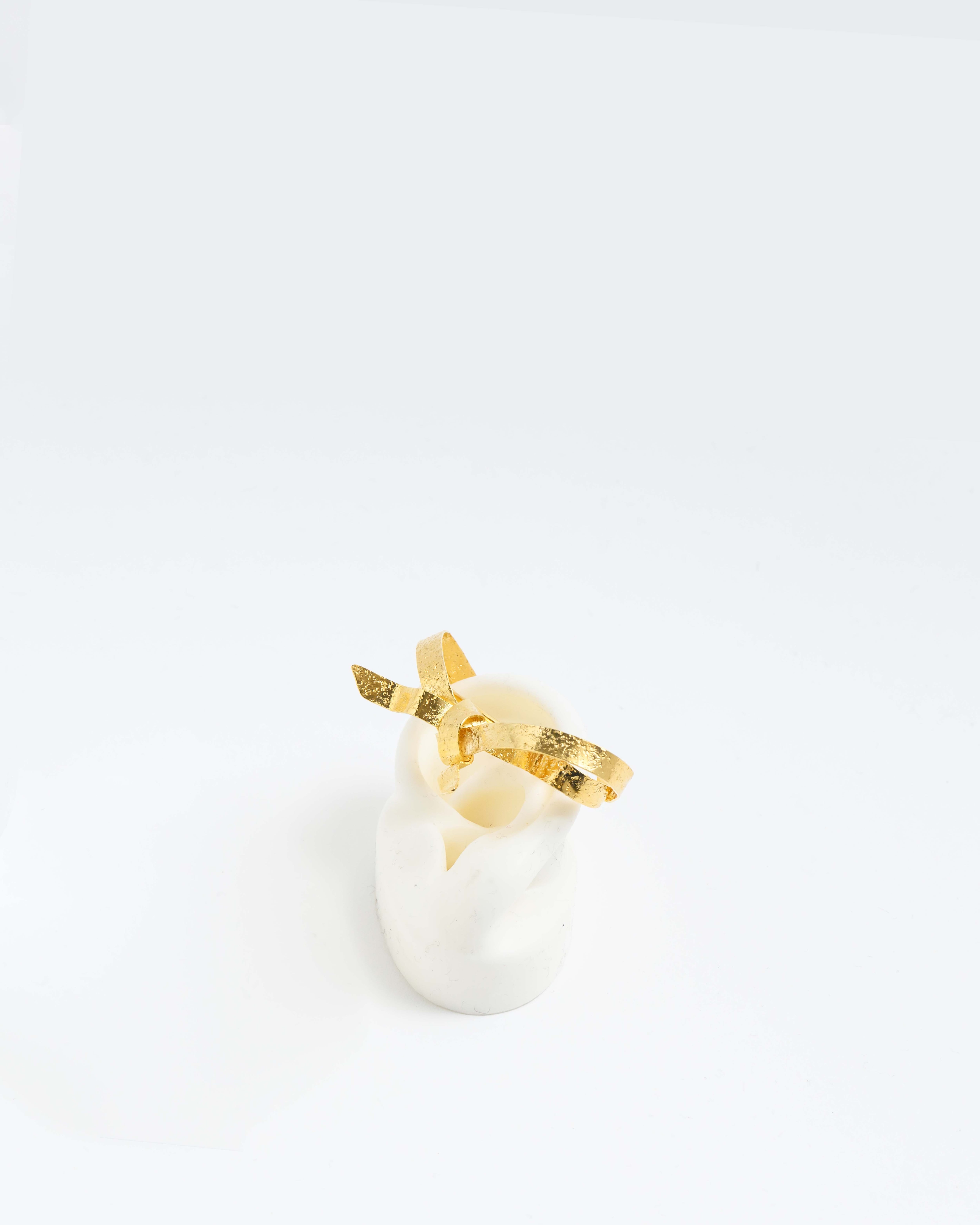 ひとつひとつの結び目が、贈り物のように耳元を包み、スタイリングのアクセントとなります。 Each knot wraps around the ear like a gift, becoming an accent to your styling. ・ロサンゼルスのショールームに展示中。 ・受注生産のため発送まで20日前後かかります。 ・全て手作業のため全く同じ形にはなりません。使用素材は全て同じになります。 素材: 真鍮18kメッキ ニッケルフリー