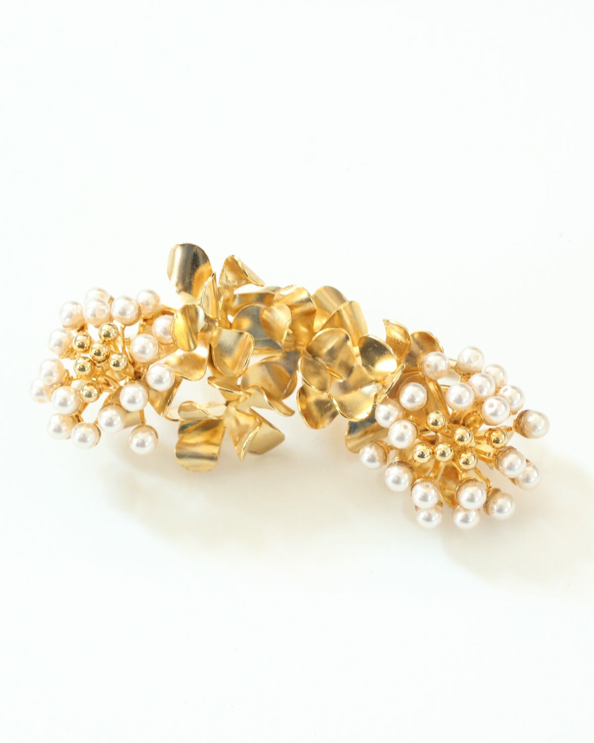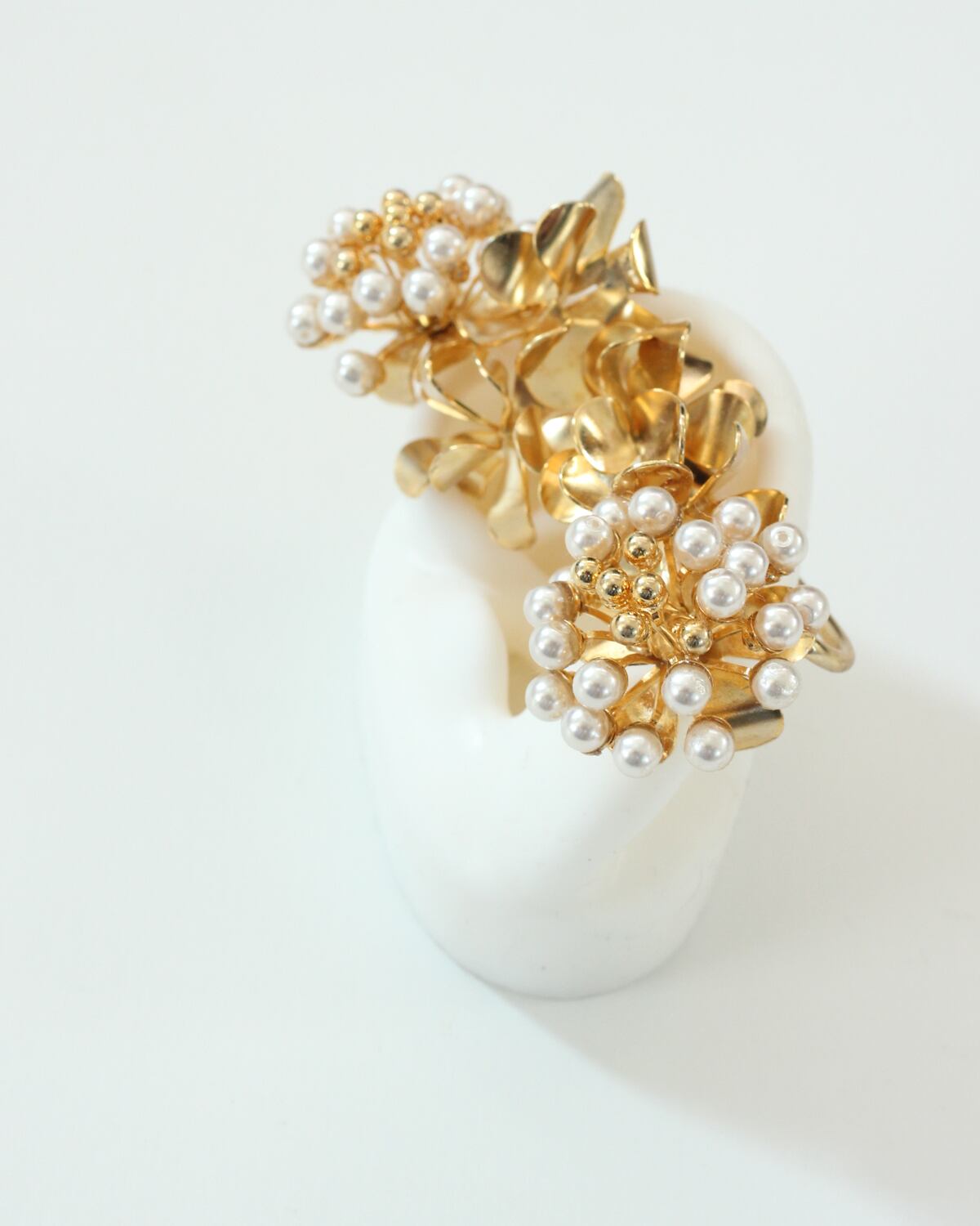 吉祥の象徴である梅と千両をかたどったフォルムを花束に見立て、 新しい始まりを祝う日に、願いを纏うジュエリーとして寄り添います。