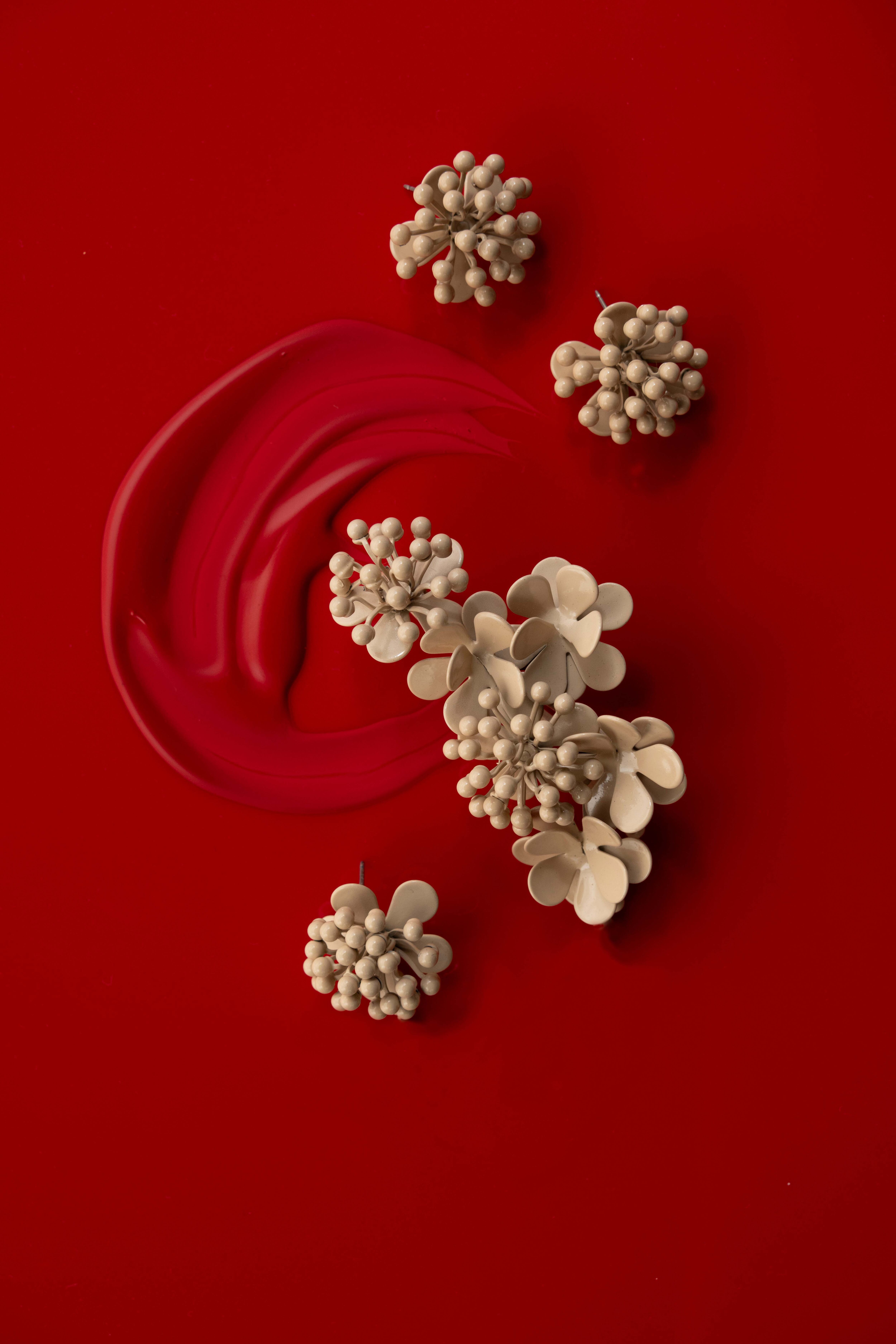 日本の伝統的な主菓子にインスピレーションを得たArt sweets -URUSHI -シリーズ。本作はねじ梅と千両をかたどり新年の祝宴をイメージしました。夢の瞬間に華を添える耳飾りをコンセプトにしたEar Jewerly。その構想に相応しいCelebrationな作品です。