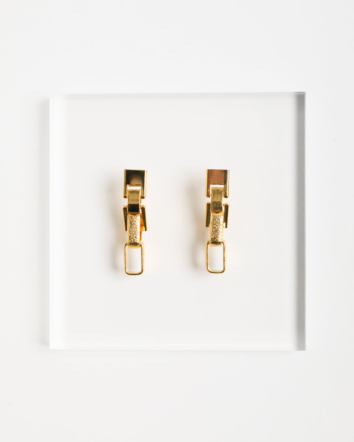以前からネックレスの留め金が好きで、耳飾りだけを作るようになってからも、気に入ったネックレスの留め金を見つけては集めてました。その留金を使って、Daily Wearのピアス/イヤリングを制作しました。こちらの作品に使用した中留めは、留め金の中でも特に好きな形で、同じサイズのチェーンを合わせています。