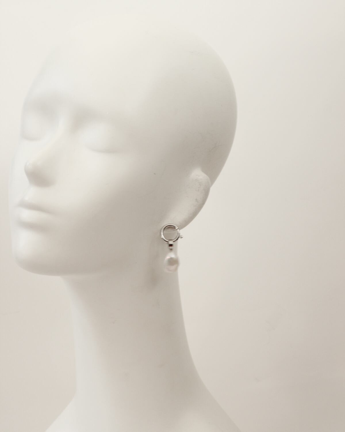 以前からネックレスの留め金が好きで、耳飾りだけを作るようになってからも、気に入ったネックレスの留め金を見つけては集めてました。その留金を使って、Daily Wearのピアス/イヤリングを制作しました。こちらの作品に使用した引き輪は、留め金の中でももっとも一般的な形ですが、大きめが可愛いところ。合わせた淡水パールは、引き輪から外すこともできるので、他のパーツに変えることも可能。※パーツは別売り 重ねづけができます